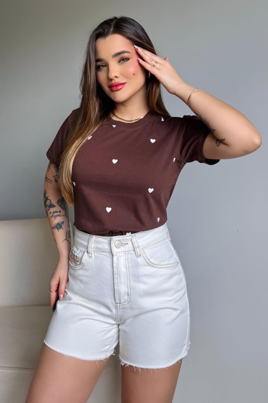 TY CORAÇÕES ESTAMPA TOTAL- CAFÉ